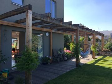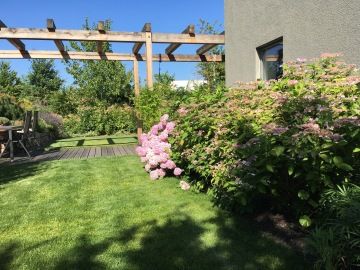 Dokonce by se dalo hovořit o tom, že je příkladná. Rodinný dům v celkem husté zástavbě, který má jednoduchý půdorys a člověku připomíná něco z racionality baťovských domků. Půdorys zahrady tak malé rozlohy si na nic nehraje, architekt se nesnažil za každou cenu vtáhnout do kompozice křivku, jako odkaz na „přírodu“. Spíše se odkazoval na jednoduché linie, tak jak je známe z kompozic hnutí Art & Craft, potažmo našich prvorepublikových architektů a jak by to u malých zahrad mělo být. Tato malá zahrada prostě umí rozmlouvat s domem i se svými majiteli, kteří byli velmi spokojeni.