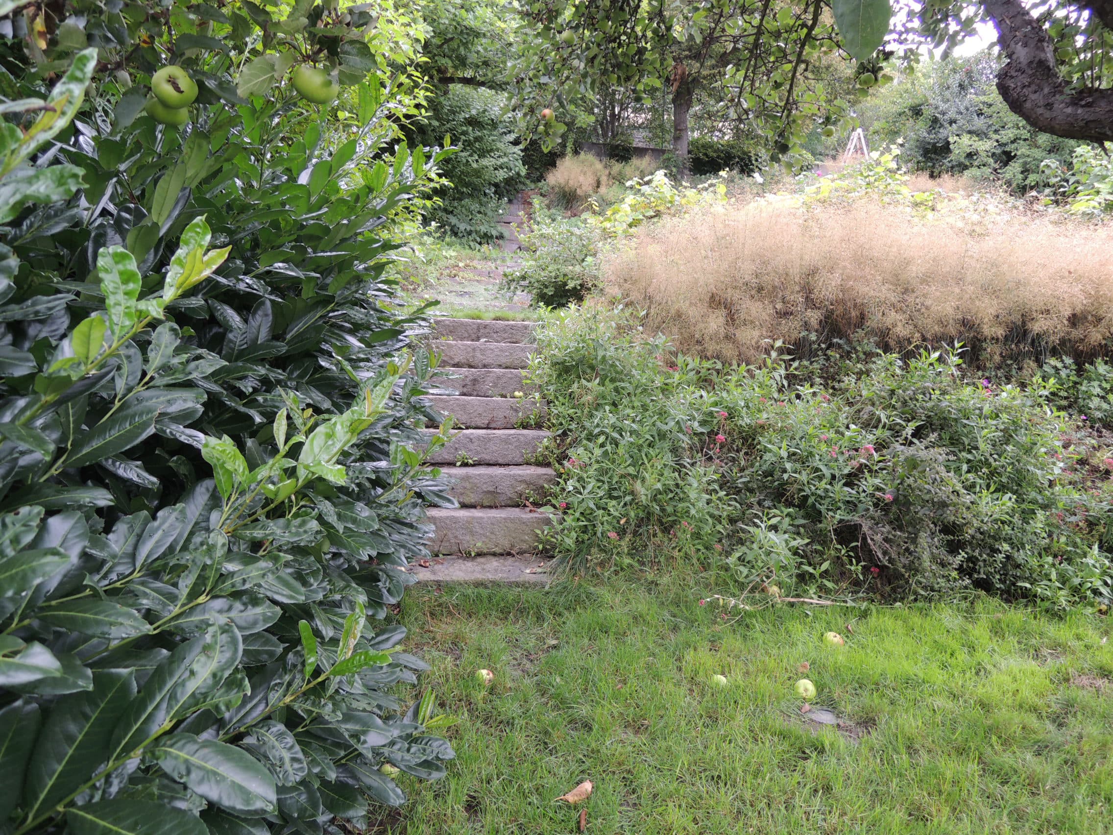 Zarostlá, bujná, krásná svými křivkami. Zahrada, která nás potrápila svým nezkrotným (neoddiskutovatelným) převýšením. Zapotili se tu statici, architekti, zahradníci, kameníci, technologové, já tehdy v 32 tt.