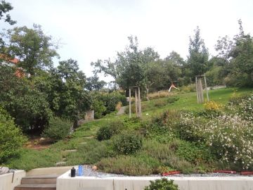 V Modřanech je to nakonec krásná jízda, „říkám tomu svah jak sjezdovka“, vzniklo plno zákoutí, nechali jsme staré ovocné stromy, které tvoří pevnou historickou kostru místa a genius loci. Doplnila se výsadba mladých stromů - pokračující generace. Je tu voda v podobě koupání (bazén ve svahu) i letní vodovod, sbírá se tu dešťová voda na zálivku.